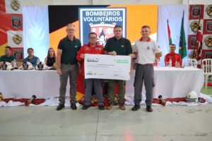 A Copérdia realizou a entrega simbólica de um montante de R$ 6.480,00 referente à campanha “Abastecida Solidária”, que fez parte das comemorações dos 58 anos da cooperativa. O valor foi arrecadado especificamente pela unidade de Santo Antônio, fruto da colaboração dos clientes e da comunidade local. O ato ocorreu durante a solenidade de Formatura dos Bombeiros Voluntários de Arabutã no dia 10 de janeiro, na sede da corporação.